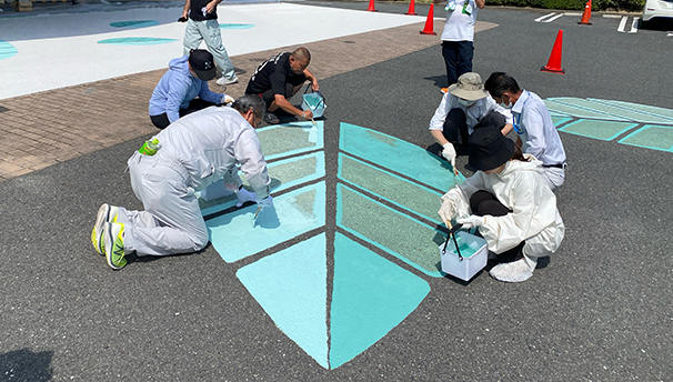 令和5年7月、北九州テレコムセンター2号館玄関前オープンスペースで「遮熱塗装プロジェクト」を実施しました