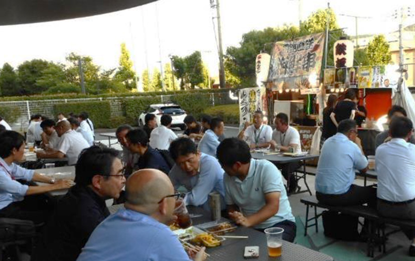 当会会員の北九州キッチンカー実行委員会よりご出店いただき、ご来場いただいた皆様はビールやお料理を楽しみながら懇談されている様子が見られました。