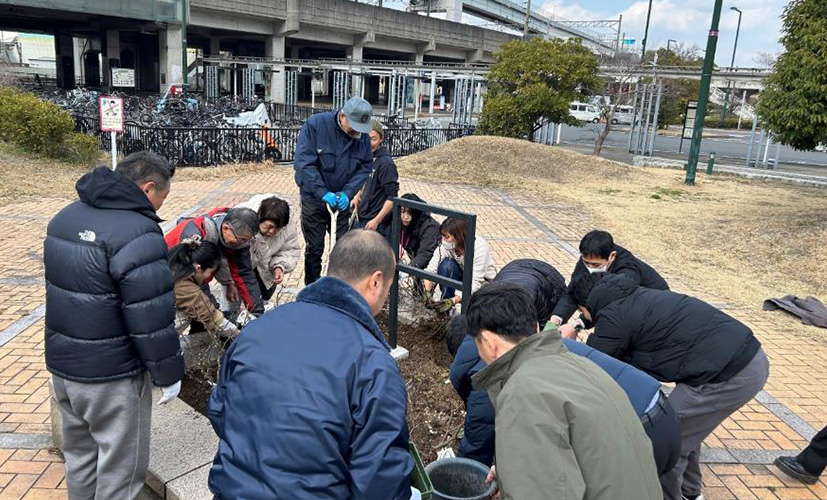 今般、2月11日にスペースワールド駅前花壇にて駅前花壇整備開始式を実施しました。